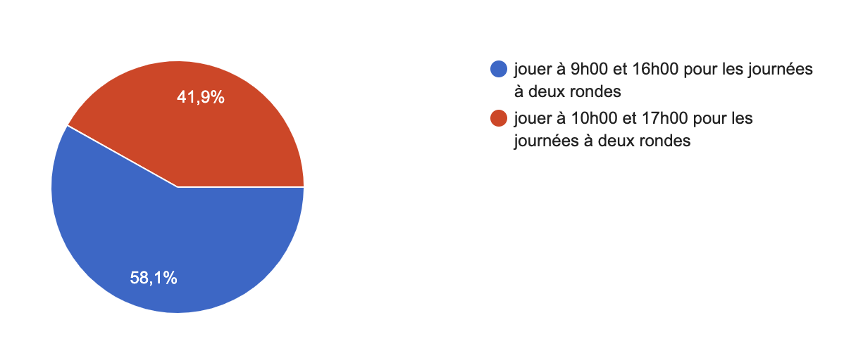 Nous vous avons interrogé sur les horaires des journées les plus chargées pour savoir si vous souhaitiez maintenir les horaires actuels ou les voir évoluer d'une heure. Les résultats semblent indiquer que les horaires actuels vous conviennent.