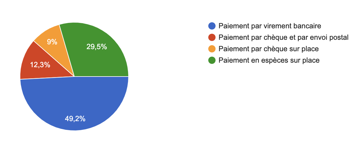Les questions suivantes portaient sur la procédure d'inscription et les moyens de paiement que nous mettons à votre disposition. Si plus de 80% des personnes interrogées estiment que la procédure d'inscription est simple et efficace, de nombreux joueurs souhaitent également pouvoir procéder au paiement des droits d'inscription à distance.